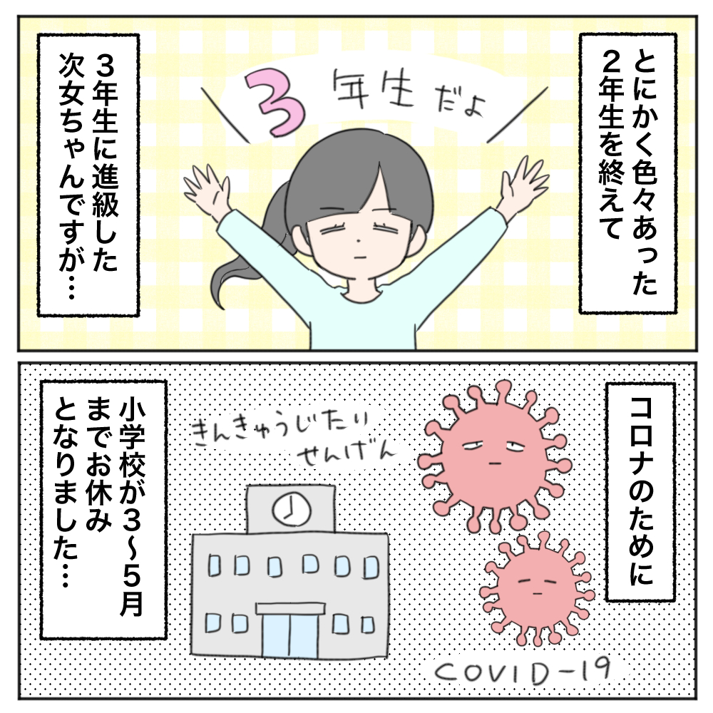 ちょうどコロナが始まった頃に、3年生に進級となった次女なのでした。