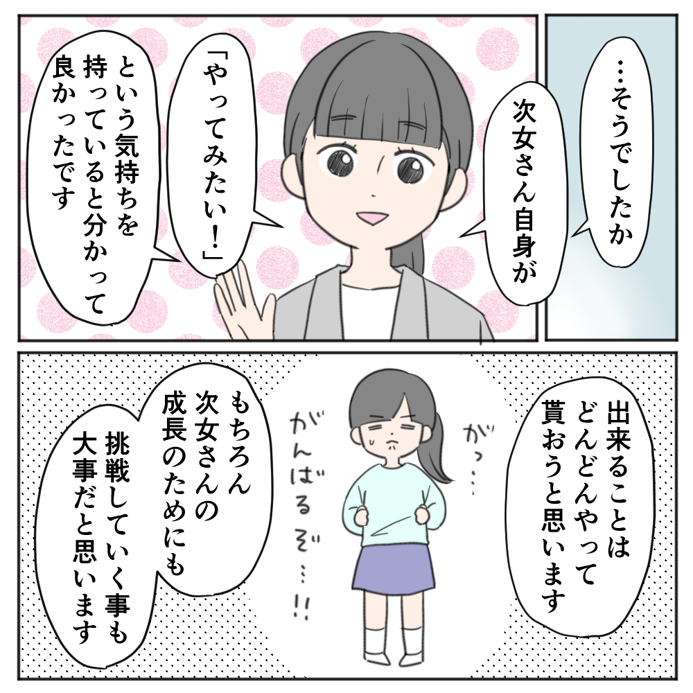 ただ、2年生の担任の先生とのこともあったので(あまりうまくいかなかった…)、話を聞いて、協力しようとしてくれたことで、私自身がとても安心できたし、嬉しく思いました…!