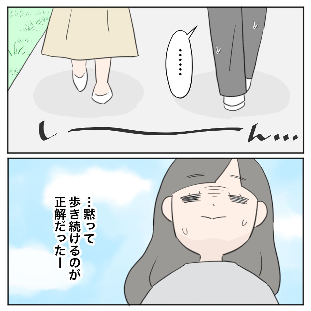 黙って並んで歩いている時間があまりに不自然すぎていたたまれなくなって耐えきれず、ついつい話しかけてしまって見事に自爆しました…。