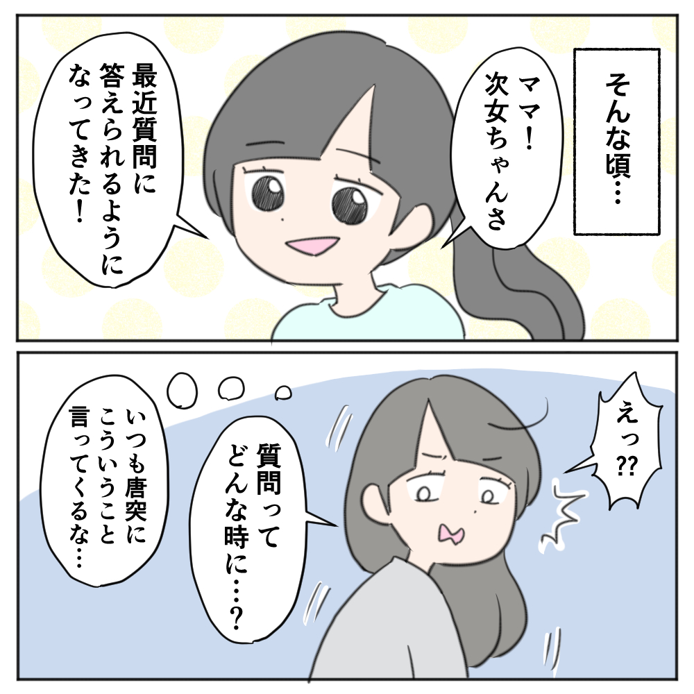 次女に対して、「学校で話せてる?」とかはあまり聞かないので、たまに、突然こういう報告があります。