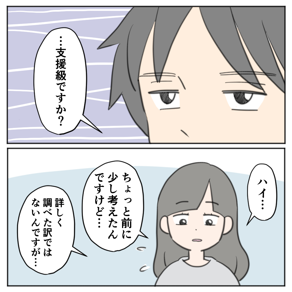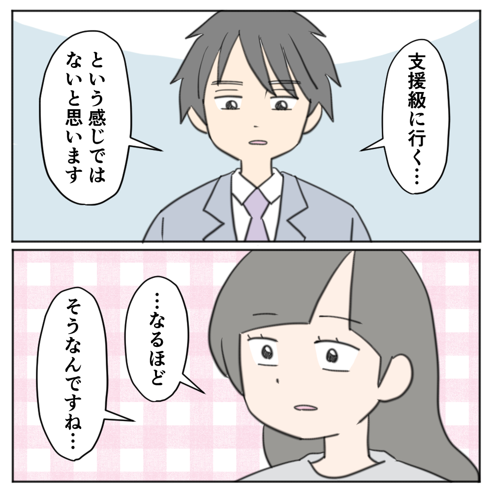 この時は、今までなんとなく考えていた「支援が必要なら支援級とかなの?」という考えを先生に伝えてみました。