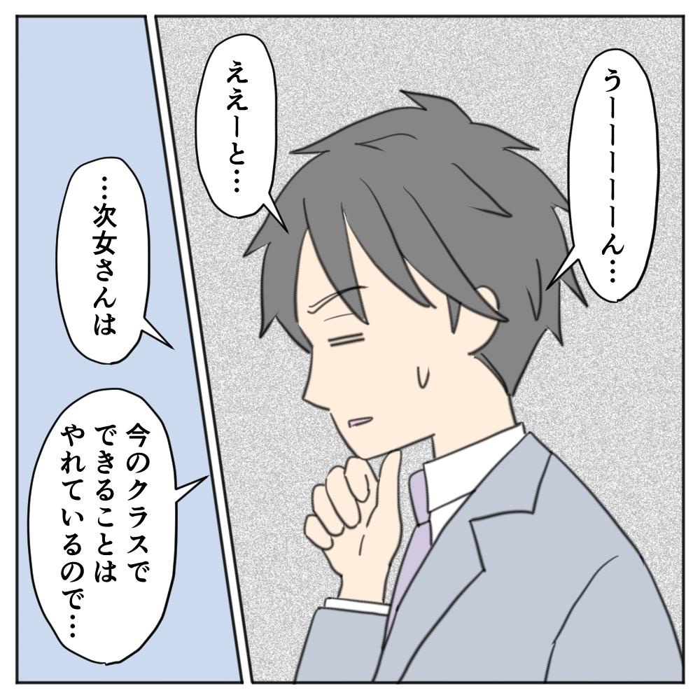 先生からは、「今の学級で何とか過ごせているものの、支援は必要な状態」というのが、学校での次女の様子だそうで。