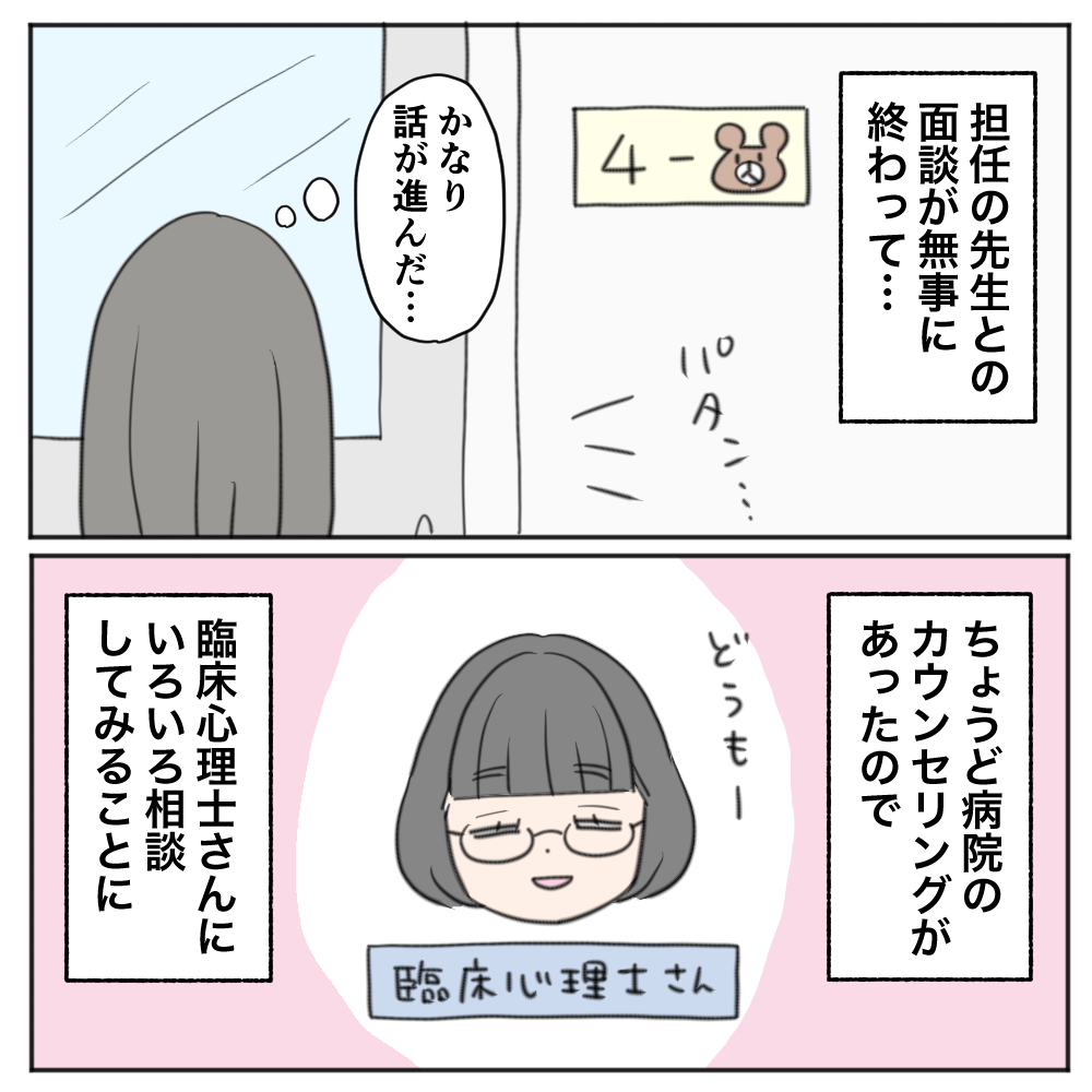 学校での面談が終わって、病院の臨床心理士さんとのお話です。