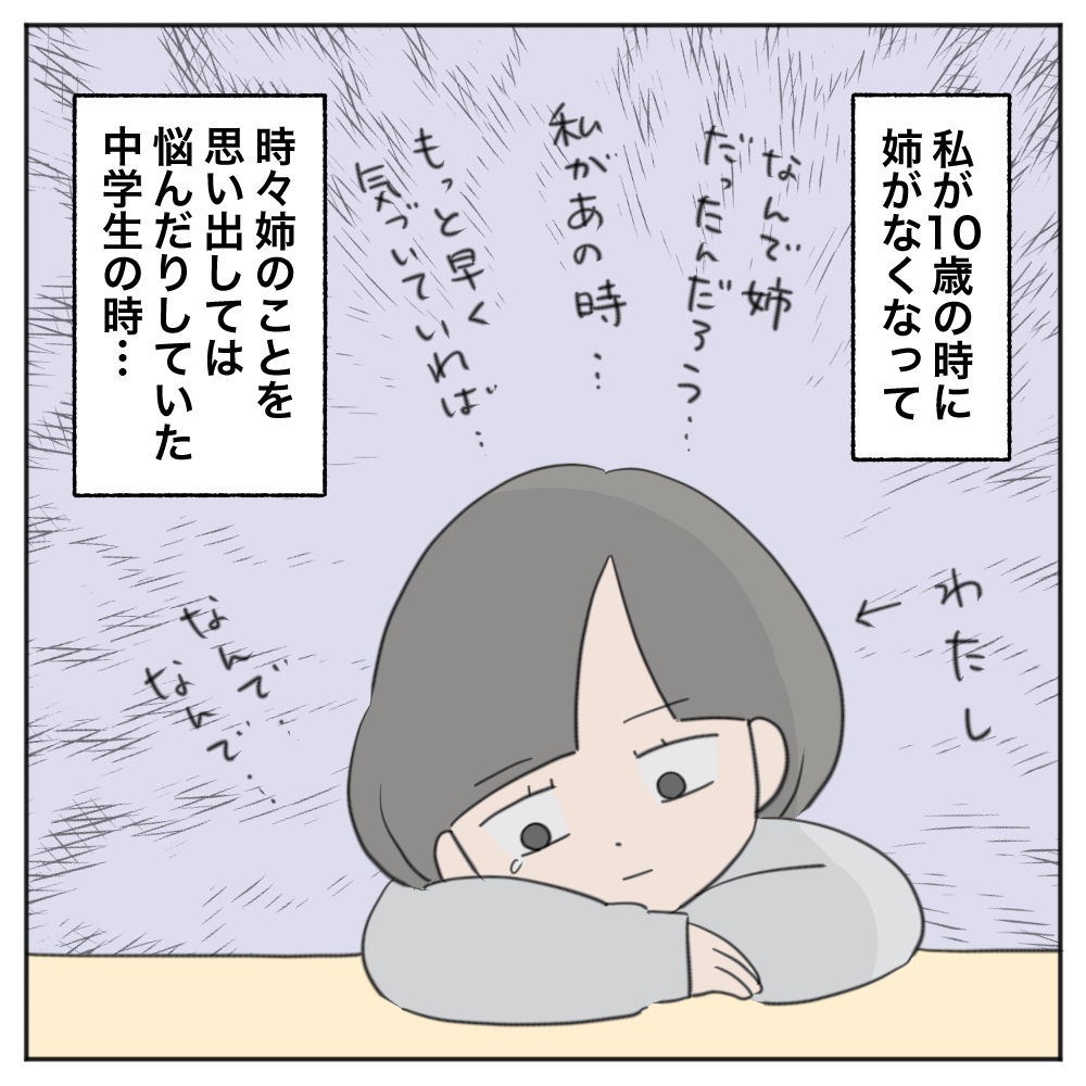 この時若かりし中学生の私は、病気で急に亡くなってしまった姉のことを、「頑張って乗り越えなくちゃ!」などと思ったりしており…。