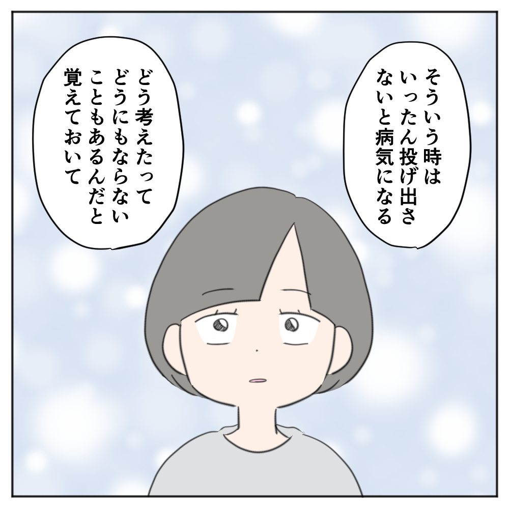 でも、それはどんなに考えたってどうにもならないことだし、頑張って乗り越えられるような類のものじゃないってことを分からせてもらった感じでした。