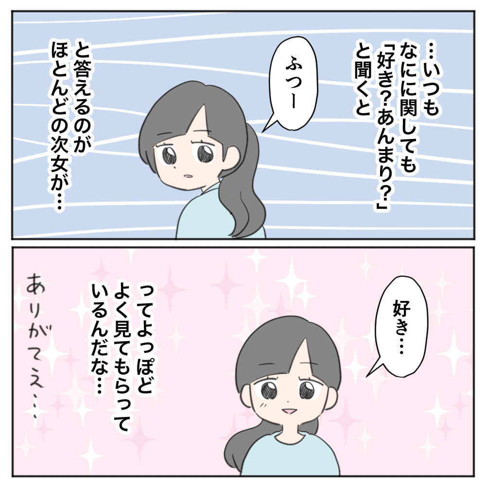 これはあくまで母親(私)側の視点で描いているので、次女の気持ちなどは結局推測に過ぎないことをご了承くださいませ。