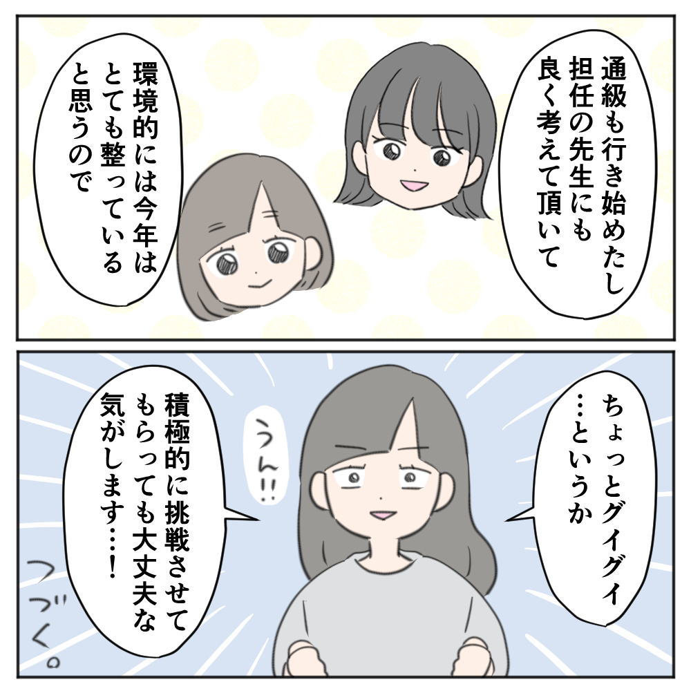 この時は、先生たちの理解もあり、支援の環境が整っていて、次女もやりやすいのかも…という感じで、進級すぐからよく頑張っているな~と思っていました。