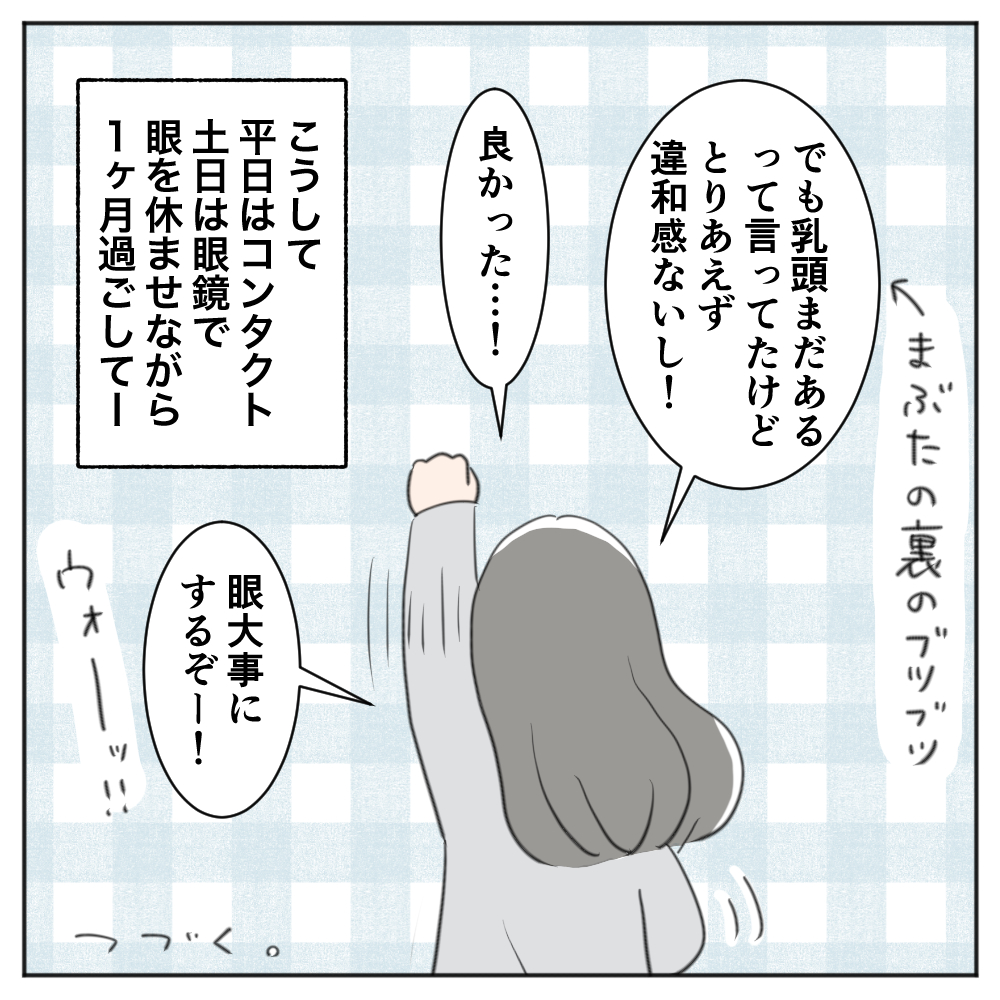 2ヶ月経って、やっっっと再度コンタクトを付けられる状態になりました!(それでもまだ乳頭は治ってない…)
