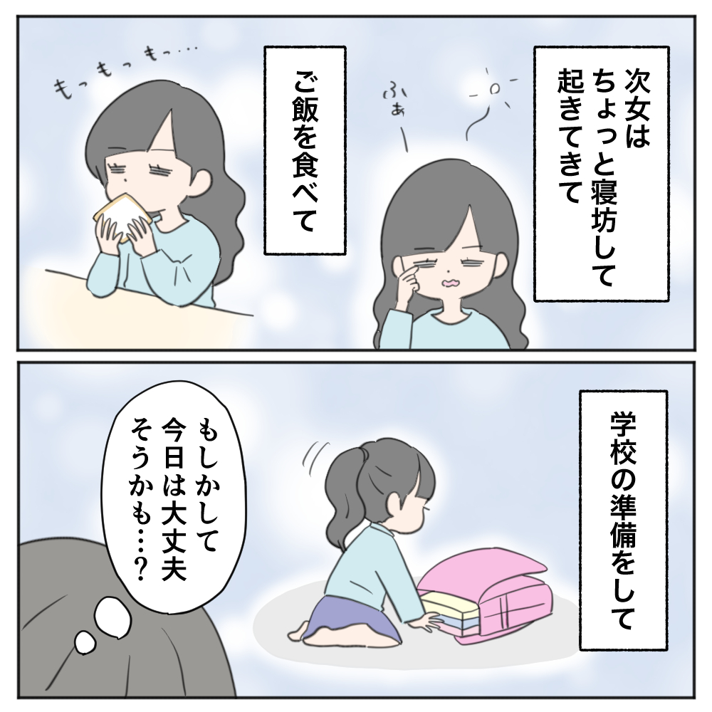 この時次女が初めて自分で「休みたい」と言って学校を休んだのでした。