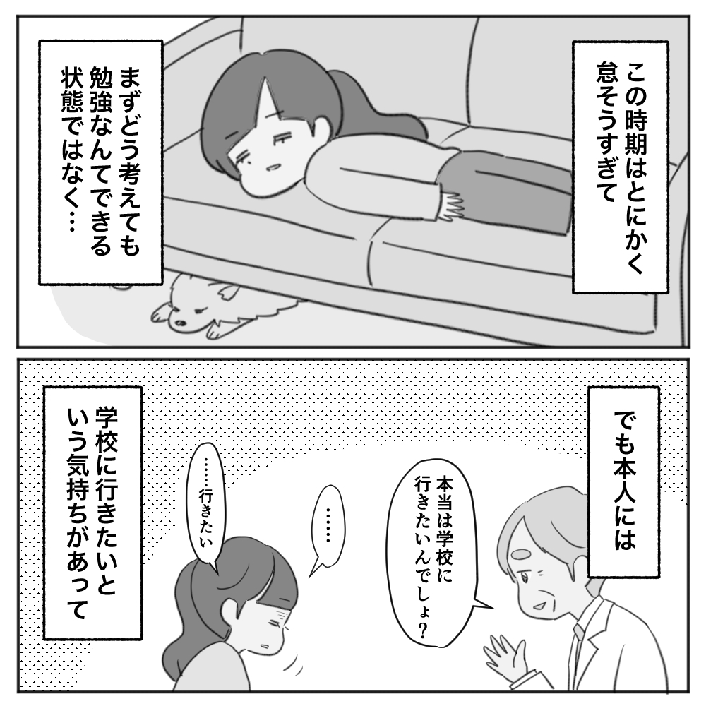 なぜ学校に行けなくなったのか、怠さの原因などはあまりはっきりしなかったものの、次女に「学校に行きたい」という気持ちがあったので、それを優先してみました。