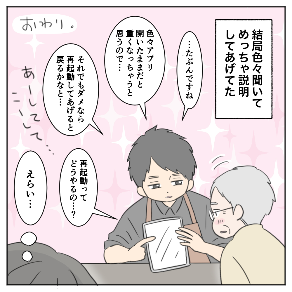 おじいちゃんも丁寧だったし、忙しくない時間だったしでこういう対応できたと思うけど、おじいちゃんも嬉しそうでほっこりしました☺