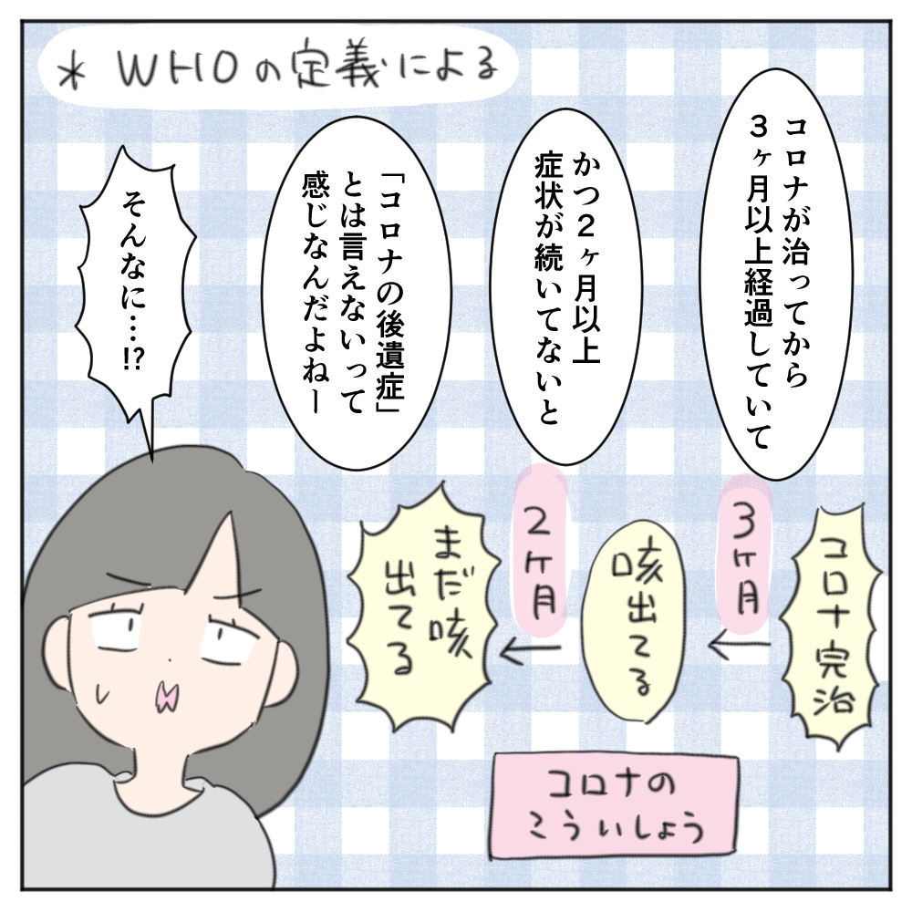 コロナの後遺症について、WHOによる基準ってのがあるんだと初めて知ったのでした…。