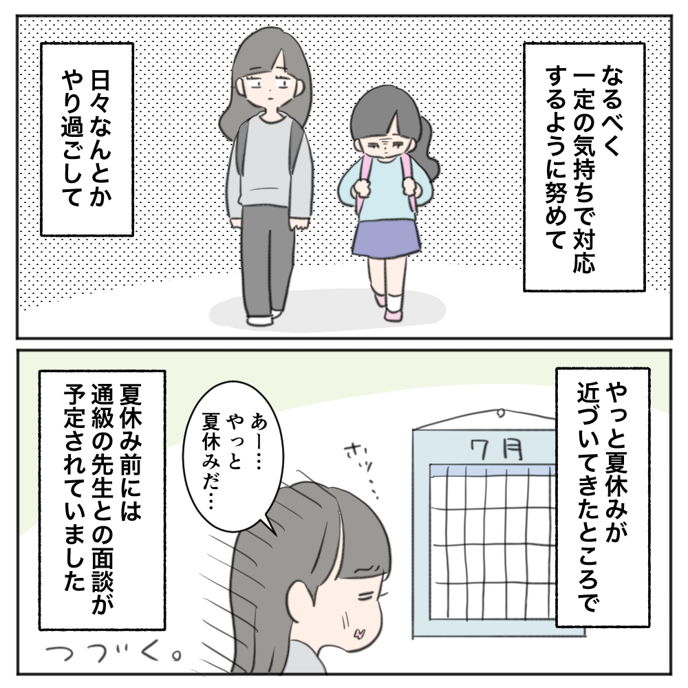 今まで、学校の長期休みはめんどくさいという感じで思っていたのですが(特に食事の用意とか…)、毎日の学校行く行かないの対応や、毎朝次女と一緒に学校まで行ったりして対応に疲れていたこの時は、初めて夏休みが待ち遠しいと思ったのでした…!