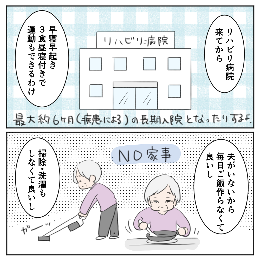 回復期のリハビリテーション病院は、病気の治療が中心となる急性期の病院とはまた違った雰囲気で、中にはこの漫画のようにわりとポジティブに過ごされている方も居ました☺