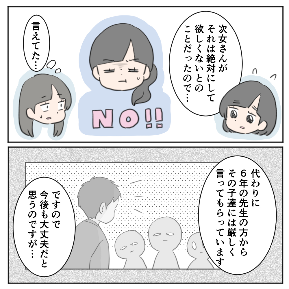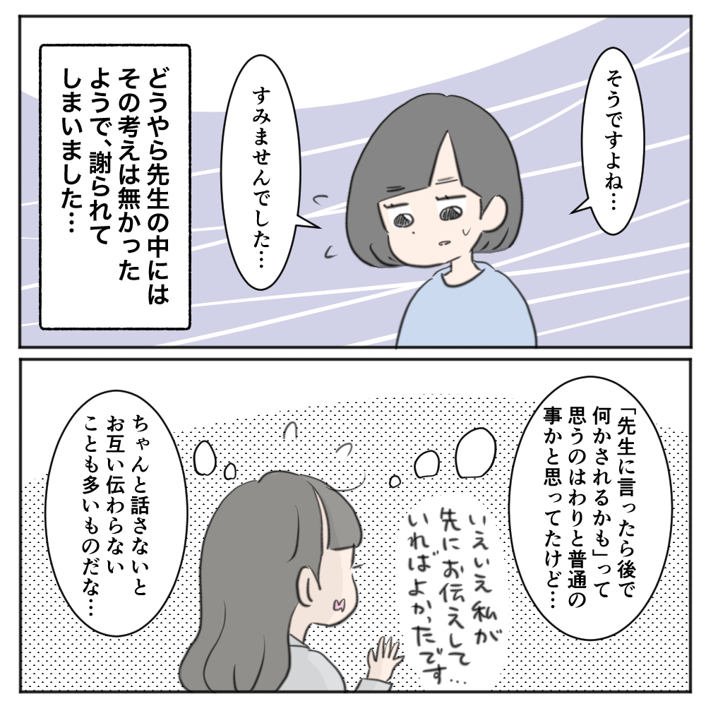 次女から先に話を聞いていたので、「(石を投げた男の子たちに)悪気があったわけではない」という先生の発言に驚いてしまいました…!