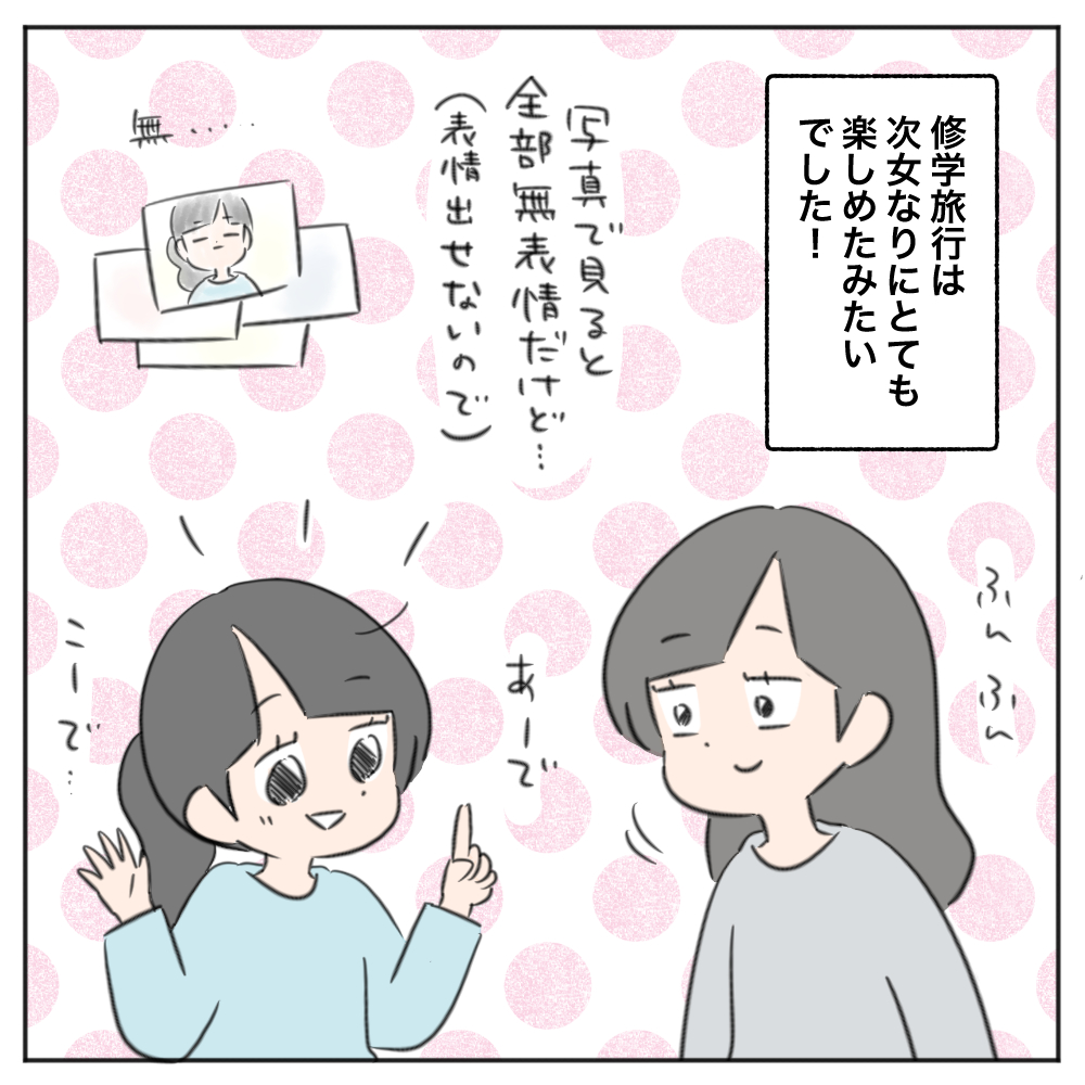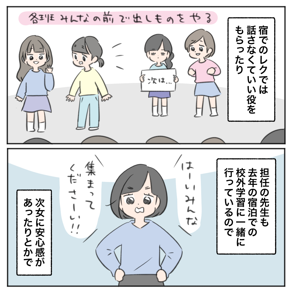 もうずっと学校で6年間話せないので、そういうキャラクターで定着してしまっているのが良い方向に出た修学旅行でした。