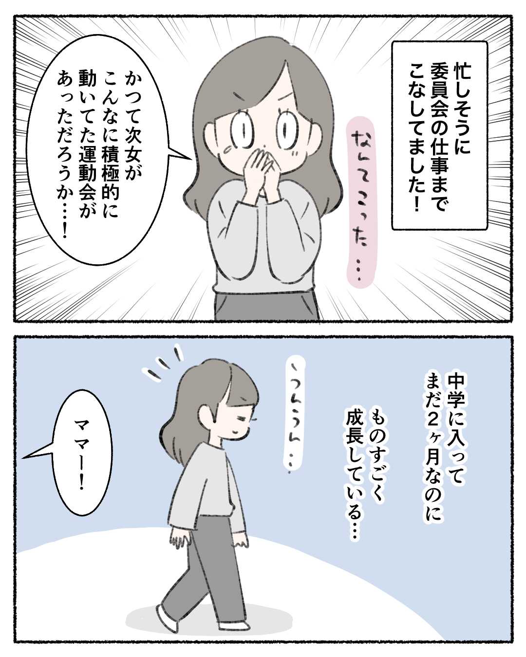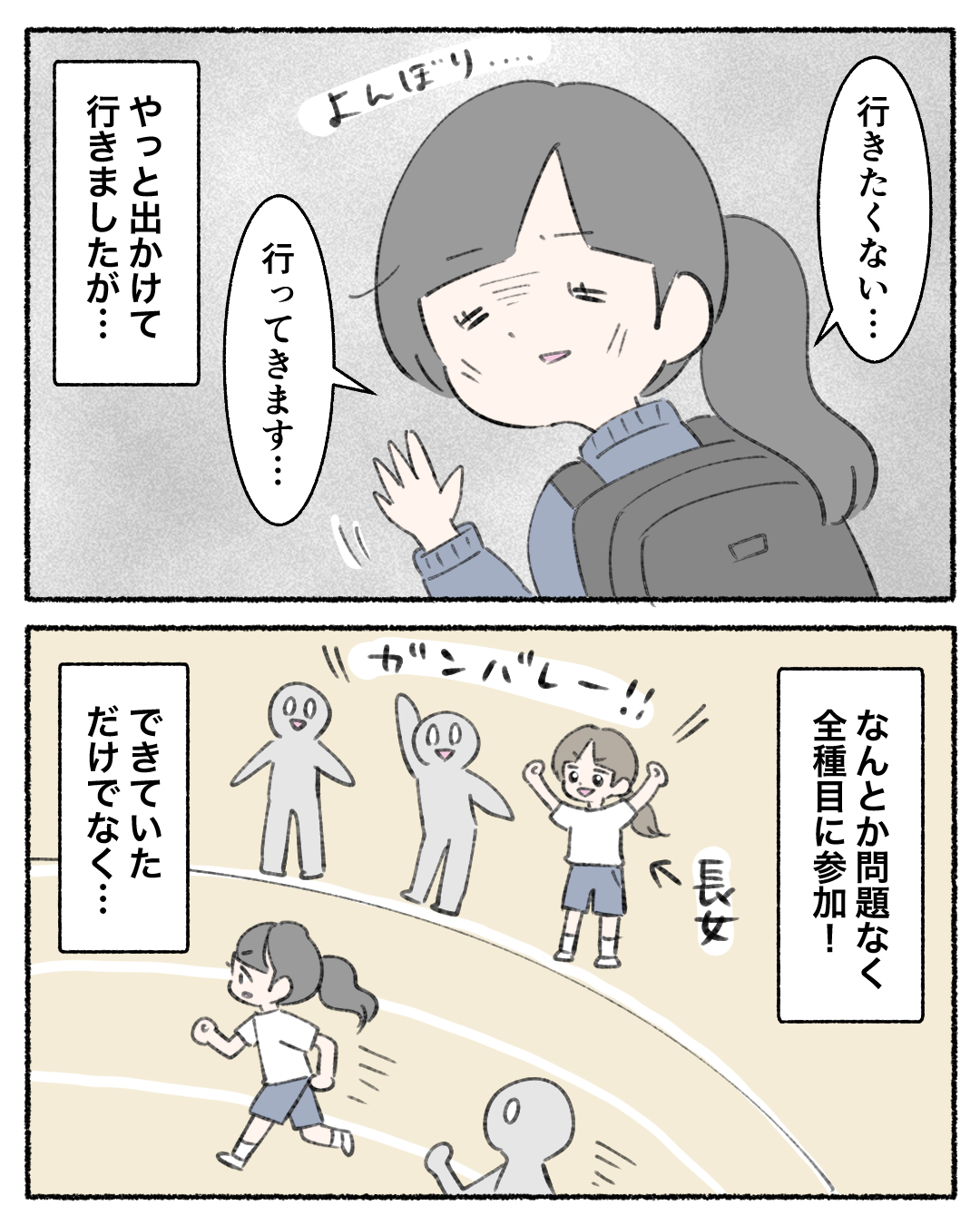 小学校の時は運動会前に胃痛を発症したりしていて、この時はそういった身体の不調はありませんでしたが、もちろんストレスは感じていて、それを私になんだかんだ言葉にして伝えて発散している感じがありました。